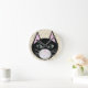 Reloj Redondo Mediano Beige de Herringbone de gato negro