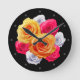 Reloj de impresión Motif para Rosas en auge. El diseño presenta un hermoso rosa con motivos florales. Inspirado por la impresionante belleza de los rosas en plena floración. Este estilizado motivo de rosa floreciente le añadirá un color vibrante a su decoración de casa y alegrará cualquier habitación donde se muestre el reloj. Los rosas coloridos se colocan sobre un fondo negro, lo que los muestra bien. Hace el regalo perfecto para la familia o los amigos que aman a los rosas. Gracias por el apoyo y por visitar mi tienda - UniquelyDistinct. No dudes en transferir este diseño a otros productos de Zazzle.