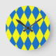 Reloj Redondo Mediano Blue Yellow Harlequin Checkered Design