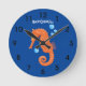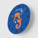 Reloj Redondo Mediano Bóbulas de caballito de mar naranja personalizado