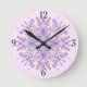Reloj Redondo Mediano Boho Flor de Fantasía Púrpura Botánica Mandala