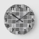 Este reloj tiene un diseño Boho de cuadrados con patrones en cada uno en blanco y negro.