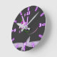 Reloj Redondo Mediano Bonito elegante morado flor negro fondo