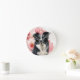 Reloj Redondo Mediano Border Collie Dog and Bold Pink Lilies