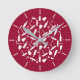 Reloj de pared rojo de Borgoña con un patrón de gafas de vino blanco, botellas y pernos