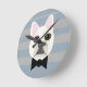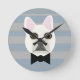 Reloj Redondo Mediano Bulldog blanco francés, rayas