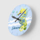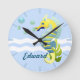 Reloj Redondo Mediano Caballo de mar azul y amarillo