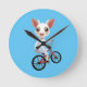 Reloj Redondo Mediano Cabra blanca linda en una bicicleta