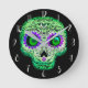 Reloj Redondo Mediano Calavera Azucarada Verde y Morada Brillante Hallow