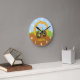 Este divertido reloj redondo es perfecto para el pequeño fanático de los camiones monstruo en tu vida, con un camión verde rodeado de llamas en una pista de tierra. Agrega el nombre de tu hijo para un toque personal.