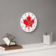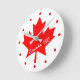 Hoja de arce roja y un texto blanco Canadá 150 adentro para celebrar el 150 aniversario de Canadá. Reloj de pared rojo y blanco único y elegante. Puede cambiar el estilo del reloj y puede cambiar o eliminar la imagen y el texto para personalizar el producto. Diviértete.