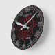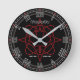 Un diseño histórico de hojas de arce rojo caligráficas con temática de la era atómica con contornos vectoriales entrelazados. Está rodeado de números romanos acentuados por marcas de hora triangulares rojas. Todo ello sobre un fondo negro rodeado por una morena blanca de suave graduación y subtitulada con el pie de foto de Canadá Desde 1867 Diputados 1867. Una mezcla tentadora de motivos clásicos, modernos y futuristas.