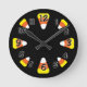 Un collage de imágenes de maíz dulce redimensionadas y rotadas, colocadas en un color de fondo de Zazzle y bajo una cara de reloj negra y brillante. Todo es personalizable.