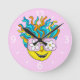 Reloj Redondo Mediano Carácter sonriente divertido con anteojos rosados