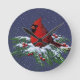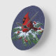 Reloj Redondo Mediano Cardenal en rama del pino Nevado: Navidad: