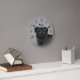 El original ilustracion personalizado de Destei de un lindo abrigo negro color de la cabeza de perro de raza Pug. El color de fondo es gris con una textura decorativa. La textura puede eliminarse y el color de fondo puede cambiarse a cualquier otro color, si así lo desea. Las horas están marcadas con números. Las horas y los minutos se muestran con una cara de reloj punteada. También hay un área de texto personalizable para un nombre u otro texto personalizado.