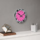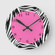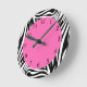 Reloj Redondo Mediano Cebra blanca y negra con rosa caliente
