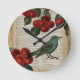 Reloj Redondo Mediano cereza roja botánica retra del pájaro francés del