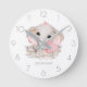 Reloj Redondo Mediano Chica de elefante lindo y personalizado rosa