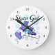 ¡Nuestras camisetas del diseño del chica del patinador, las tazas, los bolsos, las tarjetas, las almohadas, los relojes de pared, los recuerdos, las sudaderas con capucha, y otros artículos patinadores del tema ofrecen un par de patines del azul y de la lavanda y las manoplas en una secuencia rodeada por las porciones de copos de nieve y de texto hivernales que lea al chica del patinador!