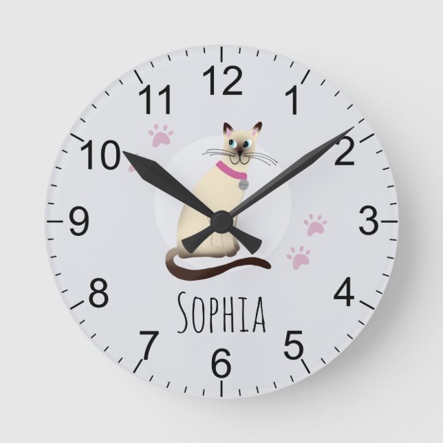 Reloj Redondo Mediano Chicas acribillan a un gato Personalizado de siamé