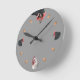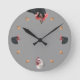 A frivolous clock for poultry fans with four chicken portraits - two matching black hens heads left and right, a larger black hen looking down from the top, and a white sussex hen at the bottom. The intermediate hours are small eggs. A bit of humor for the kitchen :) This version is with a dark grey background which can be changed using the customize button and edit.