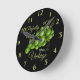 Aumente su ánimo y celebre su amor por la fruta con este reloj de uvas fresco y atractivo. El verde claro es un elemento destacado en este diseño. Para añadir un toque especial, cambie el texto y el color de fondo de este reloj.