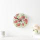 Reloj Redondo Mediano Claveles rojos en verde con las mariposas