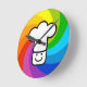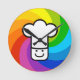 Imagen simplista de la cabeza de un chef Personalizado sobre un colorido fondo retorcido.