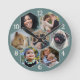 Reloj Redondo Mediano Colage de Fotos Familiares 7 Flor Hexagonal Teal P