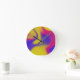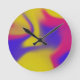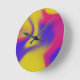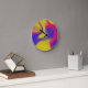 Reloj de pared cubierto con una colorida mancha de amarillo, magenta y púrpura. Personalizable.