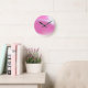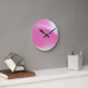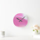 Reloj de pared cubierto con una colorida mancha de rosa y blanco. Personalizable.