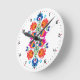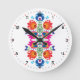Composición folclórica única con flores de corte rosa, rojo y azul Round Clock. Cute como regalo para los amantes del folk. Reloj redondo con motivo folklórico
