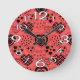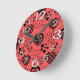 Este reloj de pared tiene el diseño de San Valentín de repetir corazones con diferentes gráficos dentro de un campo de rojo.