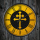 Reloj de pared: Cruz de Lorena dorada sobre negro con esfera vintage dorada