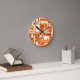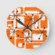 Este reloj está cubierto de cuadros modernos de estrenos naranjas y negros de mediados de siglo. Divertido por cualquier habitación.