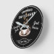 Cualquier nombre de café y relojes de café, tonos blancos y marrones en un fondo negro. Simplemente utilice la opción de personalización para cambiar el texto. Elija el color y el tamaño de la mano antes de desproteger.