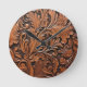 Reloj de pared de cuero marrón grabado en relieve vintage.