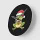 Reloj Redondo Mediano Cute Christmas Frog with Santa Hat Holding Gift -