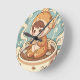 A cute chibi puffer fish character wearing a cozy costume, enjoying a warm cup of coffee and reading books. Perfect for ocean lovers and bookworms.