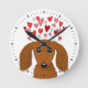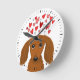 Reloj Redondo Mediano Dachshund de cabello largo con los corazones de Sa