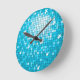 Reloj de pared con un divertido y divertido estilo "disco espejo de baldosas" estampado en tonos azules y blancos. Puede ser utilizado como fondo para su propio texto, imágenes e ideas. Tenga en cuenta que esta es una imagen de arte digital impresa, no brilla ni contiene espejos reales o purpurinas.