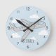 Reloj Redondo Mediano Diseño de viaje de avión azul para niños con nombr