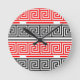Reloj Redondo Mediano Diseño del patrón rojo blanco negro griego de clav