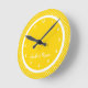 Reloj de pared del dormitorio del chico del punto polka amarillo personalizado con su nombre. Parte de una habitación completa.