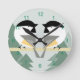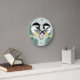 Reloj de los amantes de la naturaleza de un par de pollos con tapa negra, uno frente al otro, con árboles de fondo perennes