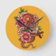 Reloj Redondo Mediano Dragón floral rosa y negro sobre
