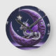 Reloj Redondo Mediano Dragón morado y blanco en una luna creciente