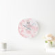 Reloj Redondo Mediano Elegante Faux Pink Marble Gray Name & Monogram