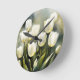 Reloj Redondo Mediano Elegante grupo de tulipanes blancos en un jardín s